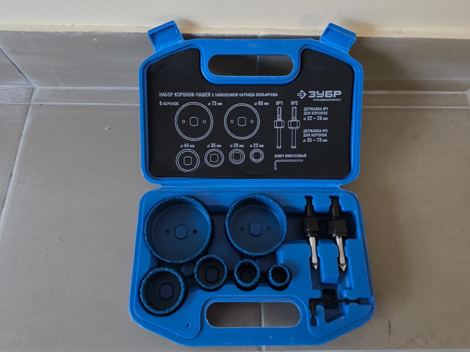 Набор коронок-чашек с карбид-вольфрамовой крошкой ЗУБР Профессионал 6 шт, 25, 22, 28, 35, 44, 68, 73 мм применяется для получения ровных отверстий в облицовочных материалах, а также в ячеистом бетоне, кирпиче и гипсокартоне. Используется на дрелях и легких перфораторах в режиме безударного сверления. Коронки-чашки с нанесением карбида вольфрама изготовлены из высокопрочной стали, имееют более широкий размерный ряд чем кольцевые коронки и позволяют сверлить средние и большие отверстия, с глубиной сверления до 25 мм.