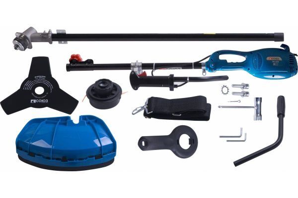 - Ширина кошения: 380 мм (леска), 230 мм (нож);